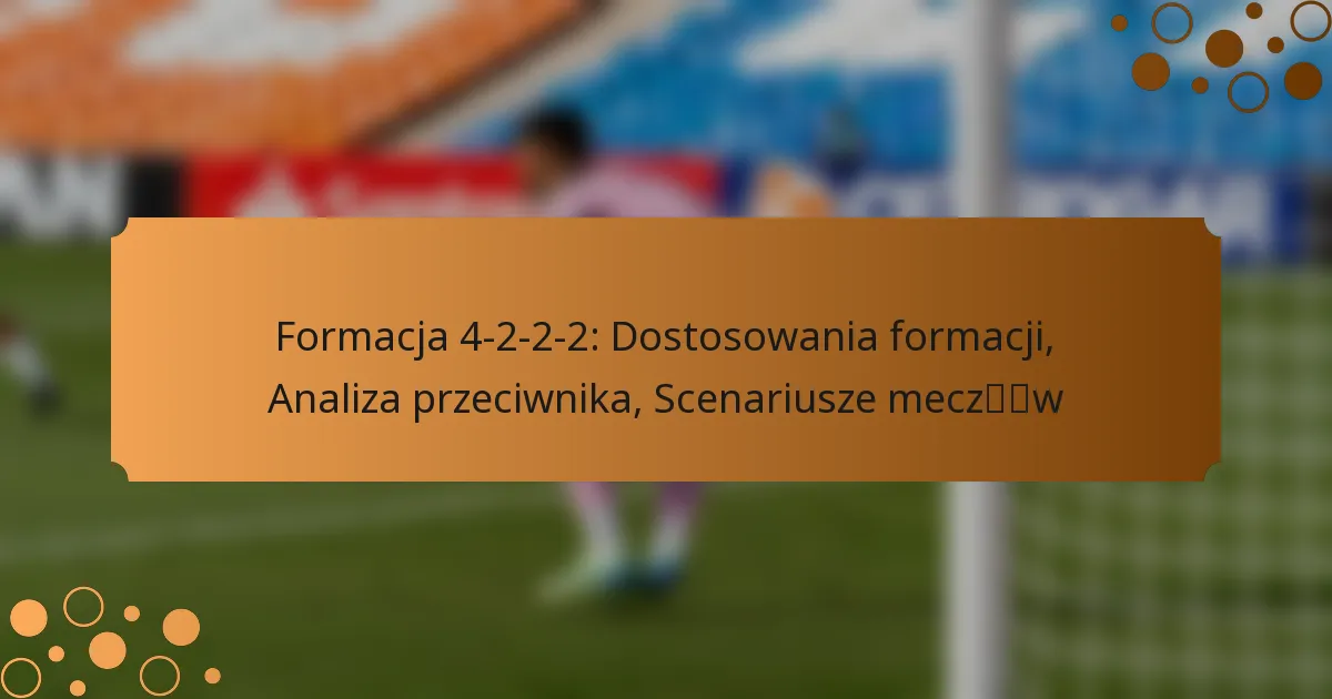 Formacja 4-2-2-2 to ustawienie taktyczne w piłce nożnej, które łączy czterech obrońców, dwóch pomocników centralnych, dwóch pomocników ofensywnych i dwóch napastników, promując zarówno siłę defensywną, jak i potencjał ofensywny. Ta formacja doskonale sprawdza się w ułatwianiu szybkich przejść oraz utrzymywaniu zorganizowanej defensywy, co czyni ją elastyczną w różnych scenariuszach meczowych, zapewniając jednocześnie efektywną kontrolę w środku pola.